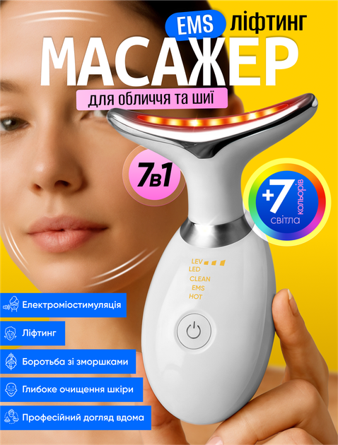Ліфтинг масажер для обличчя та шиї ультразвуковий 7в1 ems тонус від зморшок для омолодження вібромасажер електромасажер вібр
