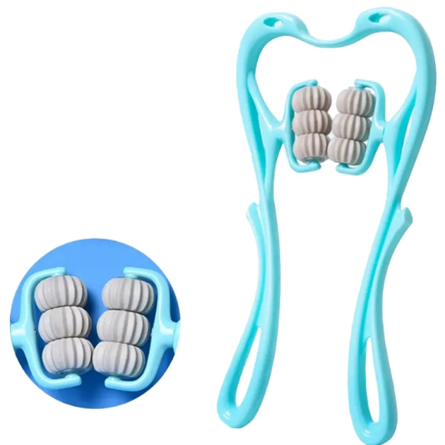 Роликовий масажер для тіла 6 роликів Massager of Neck Kneading Блакитний