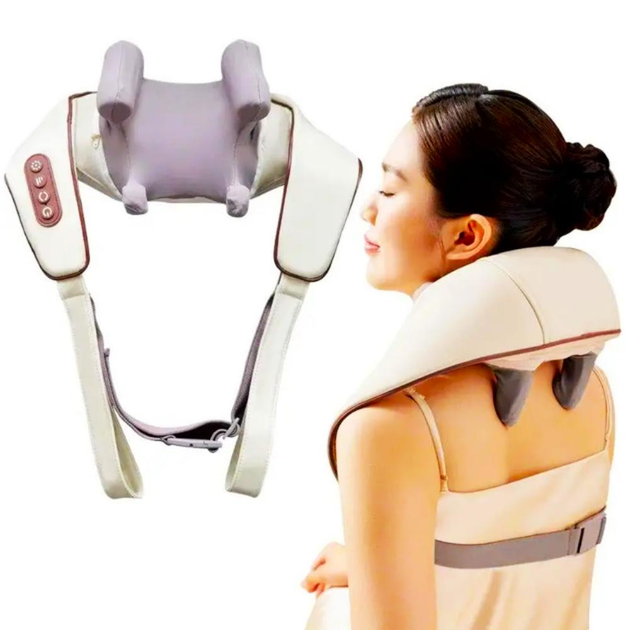 Електричний акумуляторний масажер з підігрівом для спини, шиї та плечей - білий