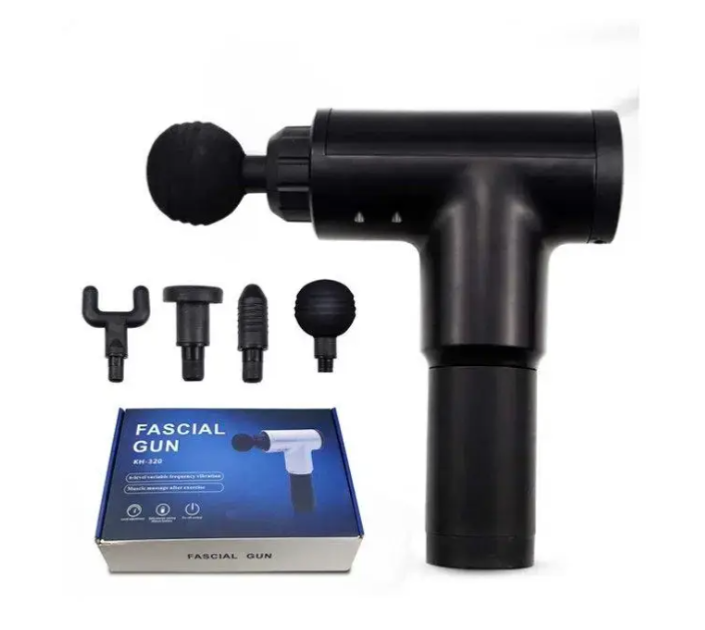 Портативний ударний масажер Fascial Gun KH-320 для м'язів спини та всього тіла, з 4 насадками, сірий KH-320