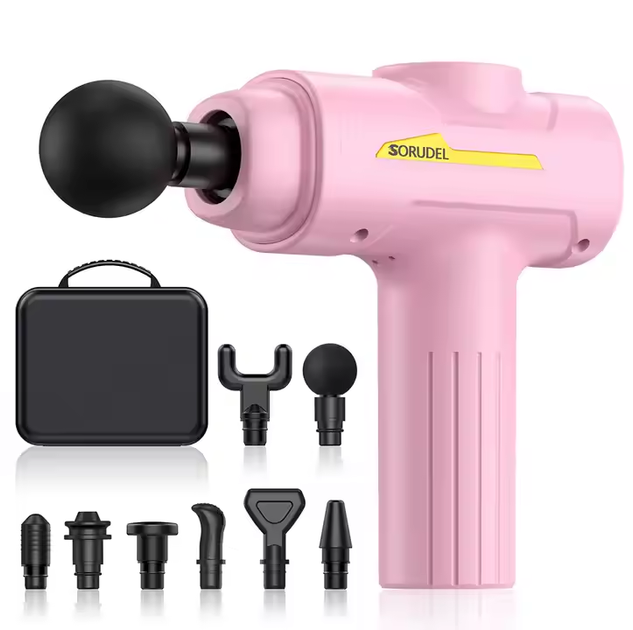 Перкусійний ударний масажер Sorudel Rose для м'язів, Антицелюлітний ручний масажер з 8 насадками та кейсом