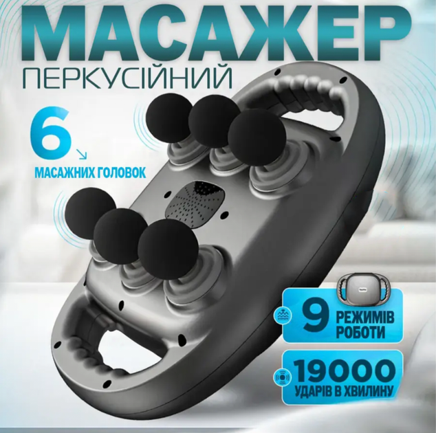 Перкусійний ударний масажер для тіла вібраційний м'язовий портативний пістолет інфрачервоний масаж 6 головок 9 режимів