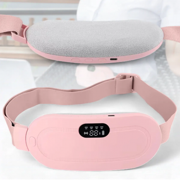Бездротовий масажер грілка для живота від менструальних болів 4 режими вібрації 3 режими нагріву Рожевий
