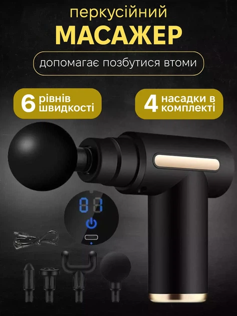 Перкусійний масажер FAS CIA GUN з 6 насадками для глибокого масажу (VA-1430294722)