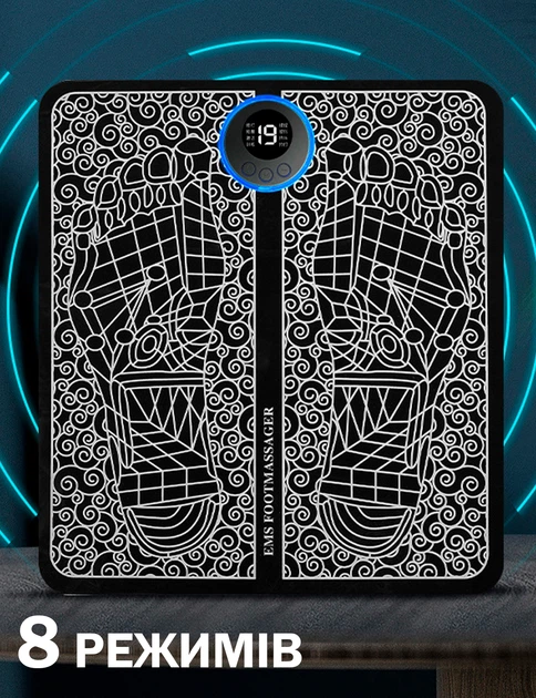Масажний килимок електростимулятор з імпульсним масажем для стоп для розслаблення і покращення кровообігу 8 режимів