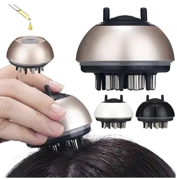 Масажна кругла щітка для голови з дозатором сироватки Золота 30 мл Силіконова ручна щітка