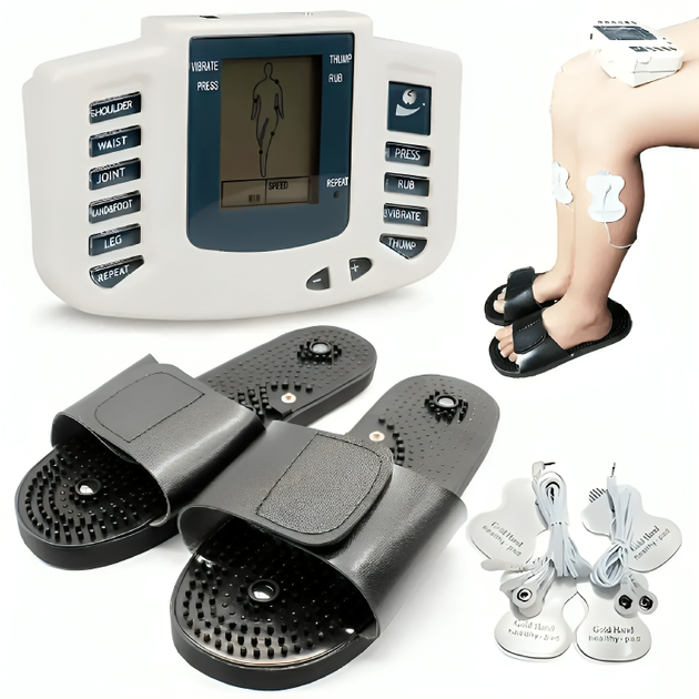 Набір комплект масажні рефлекторні тапочки з міостимулятором роботою від батарейок пухирцями регулюванням інтенсивності (479