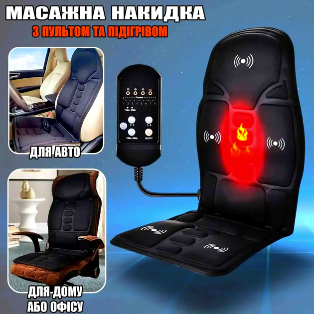 Масажна накидка з підігрівом та пультом ДУ Cushion HL-889 / Масажна накидка на крісло