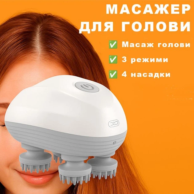 Масажер ручний портативний для голови XO FG03 акумуляторний 500mAh з 4 масажними насадками