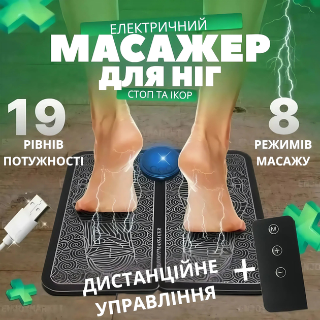 Килимок масажер для масажу ніг та стоп електричний вібраційний масажний з пультом керування