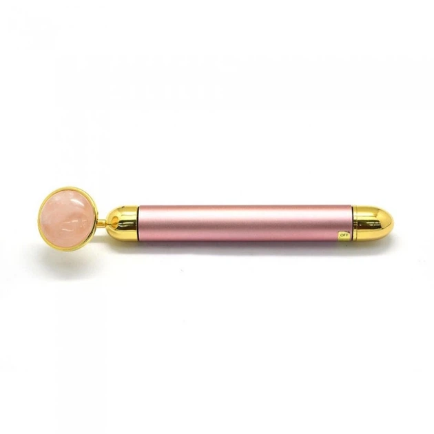 Електричний Масажер для обличчя, Натуральний Рожевий Кварц, Рожевий, метал: Золото, 155x16мм, 1 шт