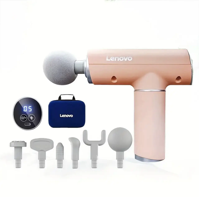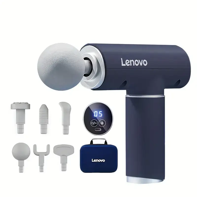 Масажер перкусійний для тіла та м'язів Lenovo + 6 насадок + кейс Масажний пістолет