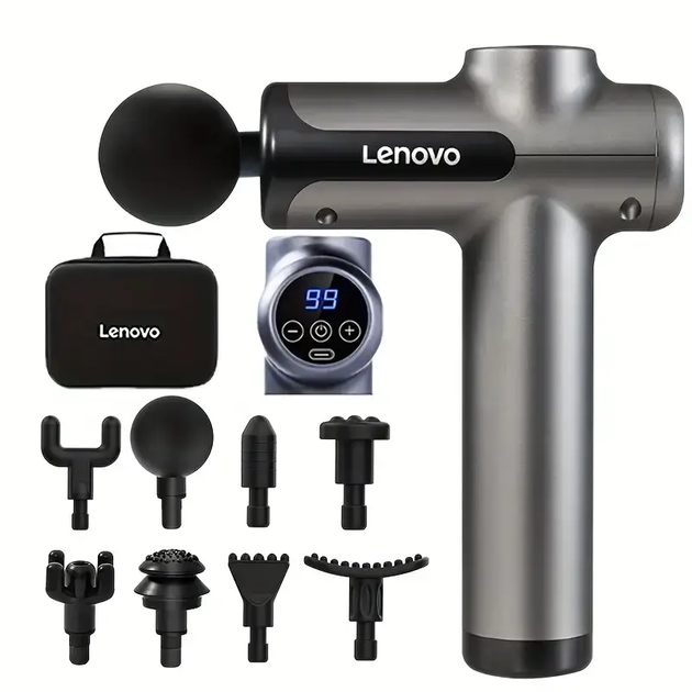 Перкусійний масажер для тіла та м'язів Lenovo + 8 насадок + кейс Масажний пістолет (4385340)