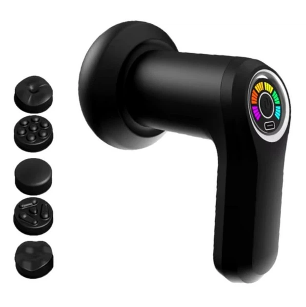 Перкусійний вібромасажер для тіла, акумуляторний ручний масажер для спини з 4 насадками, USB заряджання