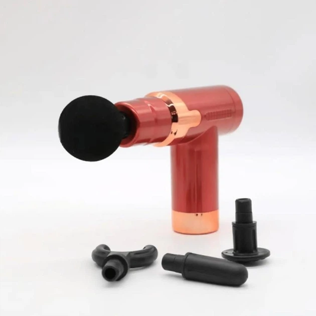 Перкусійний вібромасажер ручний акумуляторний пістолет для тіла з насадками 4 штуки JY-760 Червоний