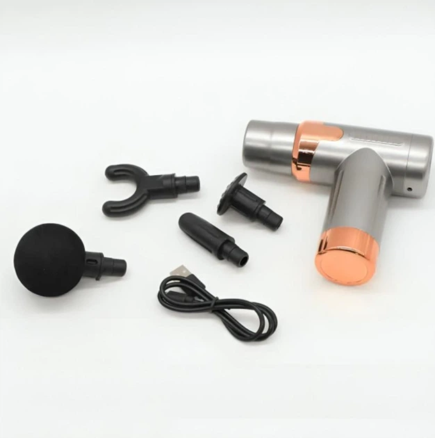 Перкусійний вібромасажер ручний акумуляторний пістолет для тіла з насадками 4 штуки JY-760 Сірий