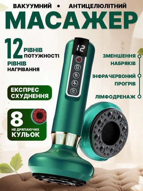 Електричний вакуумний баночний масажер електричний гуаша з прогріванням, антицелюлітний для тіла з інфрачервоним нагріванням