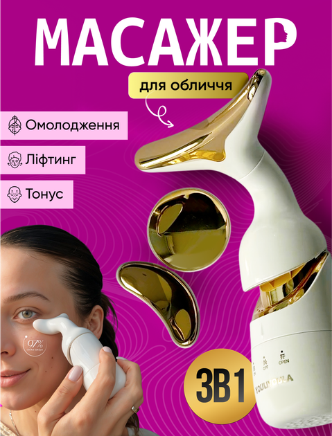 Мікрострумовий масажер для обличчя та шиї ультразвуковий 3в1 ems ліфтинг тонус шкіри від зморшок для омолодження вібромасаже