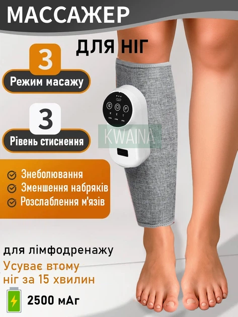 Електричний масажер для гомілок та ніг, повітряний тиск, вібрація, знеболювання, розминання, нагрівання, 3 режими