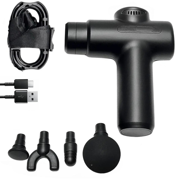 Перкусійний масажер для тіла м'язовий ударний Fascial Gun (портативний вібромасажер для тіла з 4 насадками) Чорний