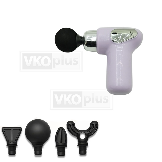Акумуляторний м'язовий масажер для тіла Compact power Massager CY009 пістолет 4 насадки фіолетовий