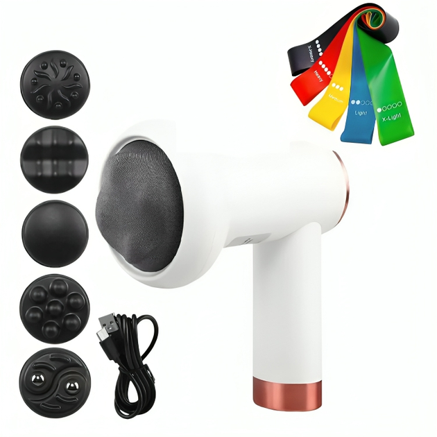 Набір антицелюлітний акумуляторний ручний масажер для тіла з насадками фітнес гумками (479681-Prob) Білий