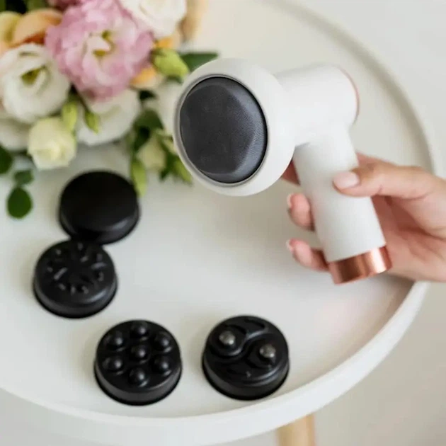 Масажер антицелюлітний акумуляторний для тіла рук і ніг Deep Rolling Massager 4 насадки 6 швидкостей 1800-3200 об/хв Білий