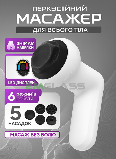 Масажер антицелюлітний акумуляторний для тіла EM YX-720 вібромасажер компактний із насадками Білий GS-9770