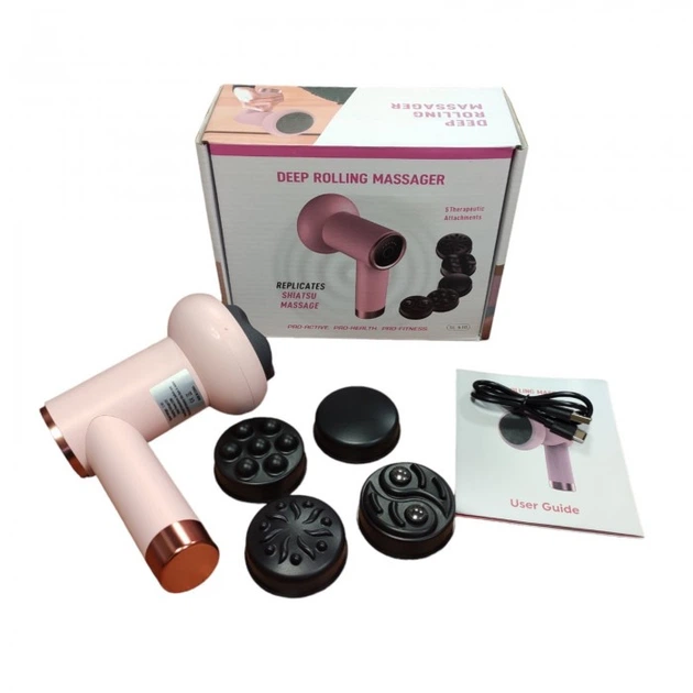 Масажер антицелюлітний акумуляторний для тіла рук та ніг 4 насадки 6 швидкостей Deep Rolling Massager Рожевий