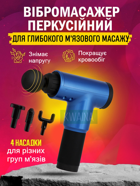 Ручний масажний пістолет для тіла м'язовий ручний ударний масажер акумуляторний, синій