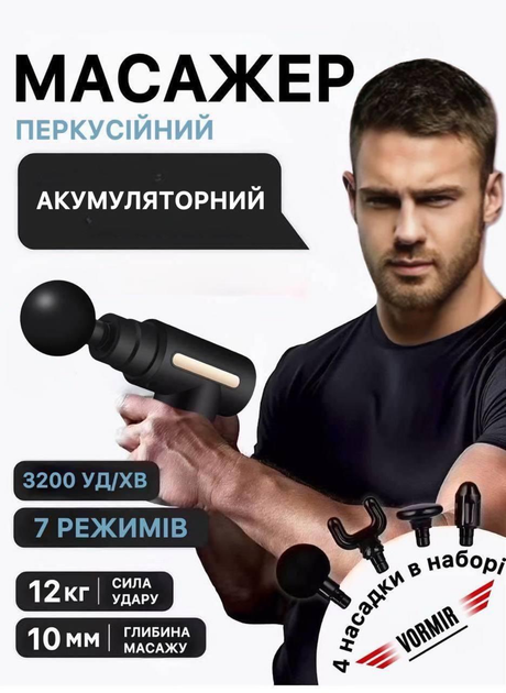 Перкусійний масажний пістолет для тіла Massage Gun вібромасажер для м'язів чорний