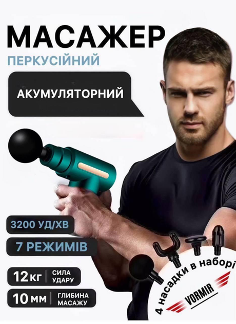 Перкусійний масажний пістолет для тіла Massage Gun вібромасажер для м'язів зелений