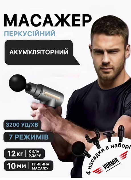 Перкусійний масажний пістолет для тіла Massage Gun вібромасажер для м'язів сірий