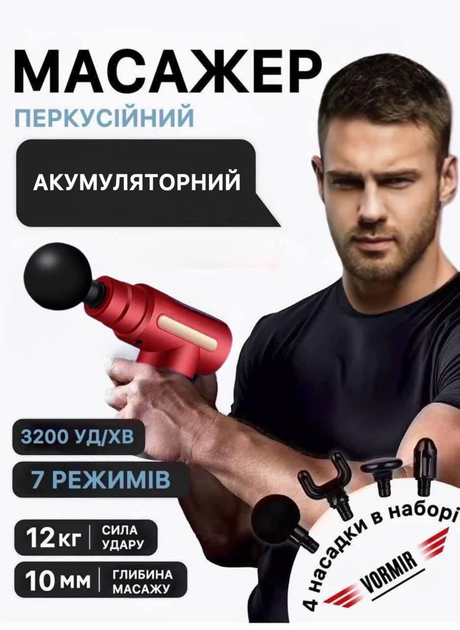 Перкусійний масажний пістолет для тіла Massage Gun вібромасажер для м'язів червоний