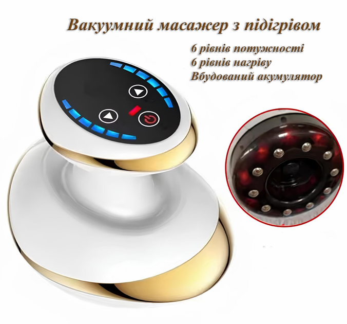 Вакуумний масажер з підігрівом. 6 рівнів потужності та 6 рівнів температури