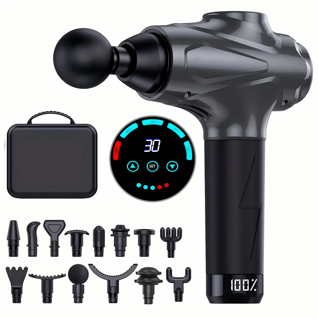 Перкусійний масажер для тіла Fascial Gun TY-802 - масажний пістолет, 99 швидкостей, 8 насадок, електричний вібраційний масаж