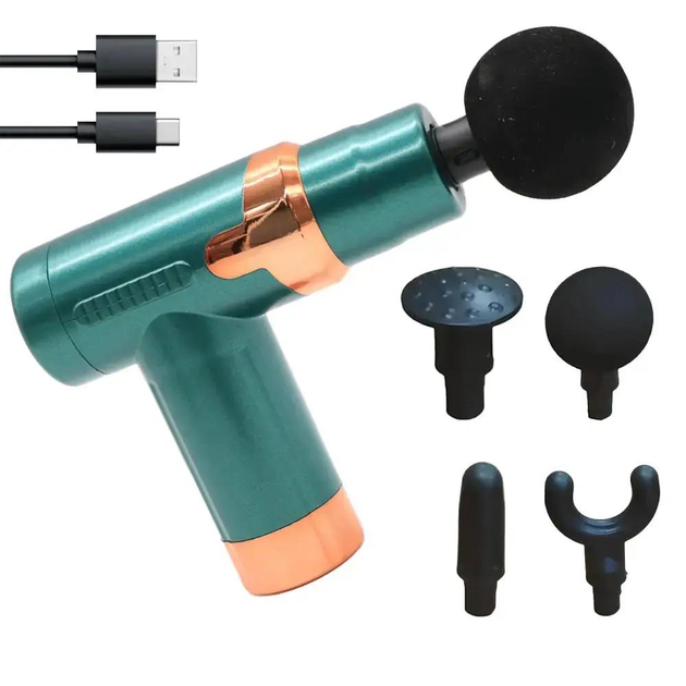 Ручний масажер для тіла Fascial Gun JY-760 акумуляторний з 4 насадками Зелений 9507