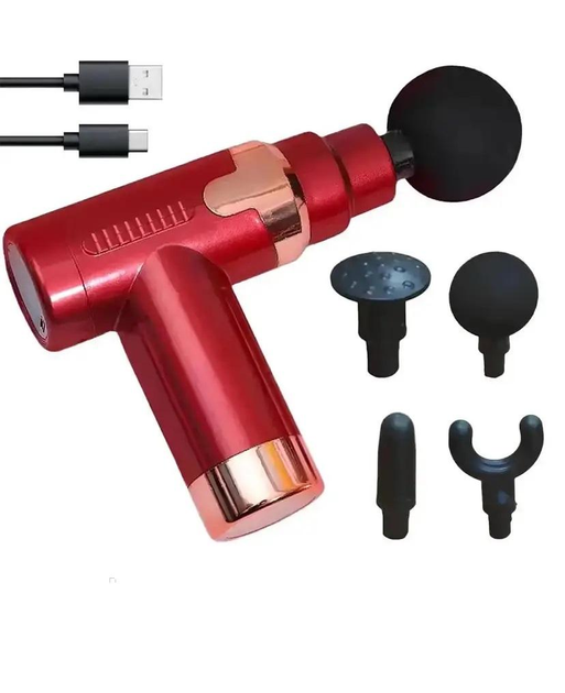 Ручний масажер для тіла Fascial Gun JY-760 акумуляторний з 4 насадками Червоний 9507