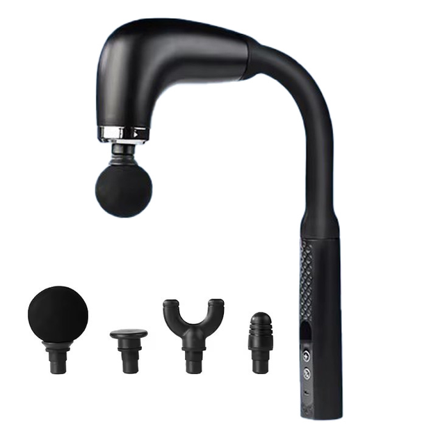 Перкусійний масажер із 4 насадками Fascial Gun U-подібний із 6 рівнями інтенсивності Чорний (FG14-B)