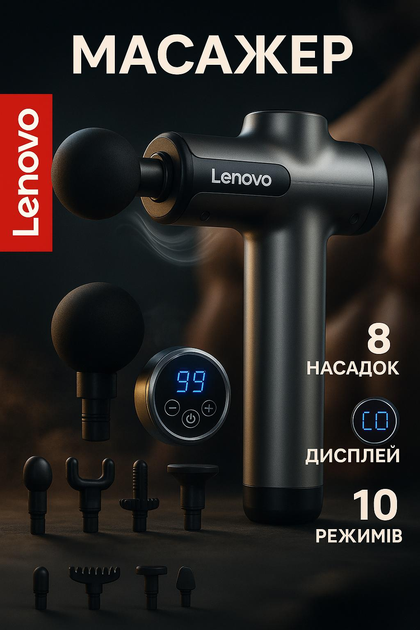 Перкусійний масажер для тіла Lenovo L-FAN003 з 8 насадками, 99 режимів, потужний, портативний, Type-C