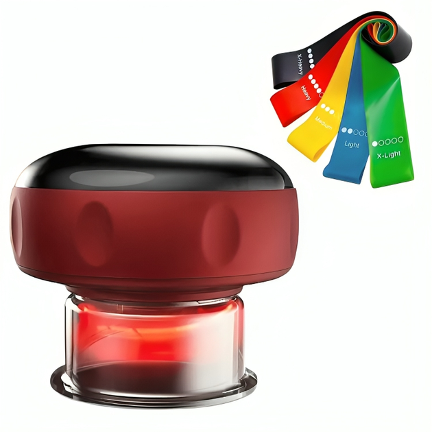 Комплект набір вакуумний масажер для тіла з дисплеєм інтенсивним зігріванням фітнес гумками (479682-Prob) Червоний