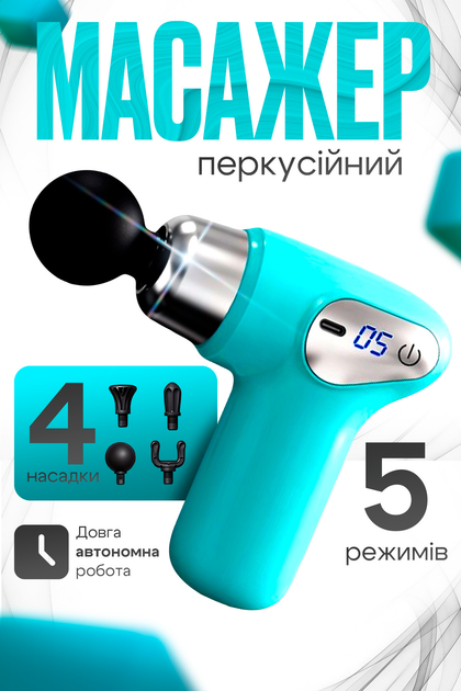 Масажер перкусійний для тіла з LED дисплеєм ручний масажер пістолет для спини і тіла 4 насадки портативний BRS Blue