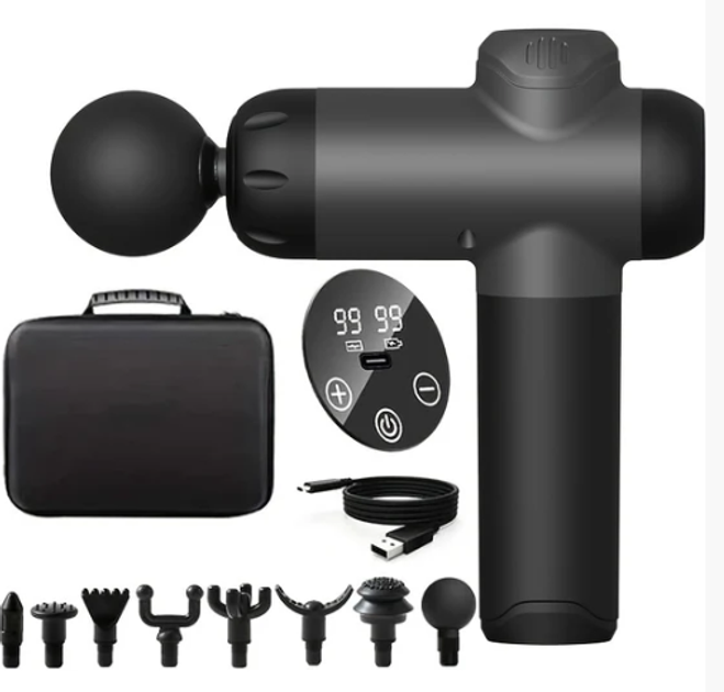 Ударний ручний перкусійний масажер, LCD екран Потужний масажний пістолет для масажу глибоких тканин тіла USB зарядка