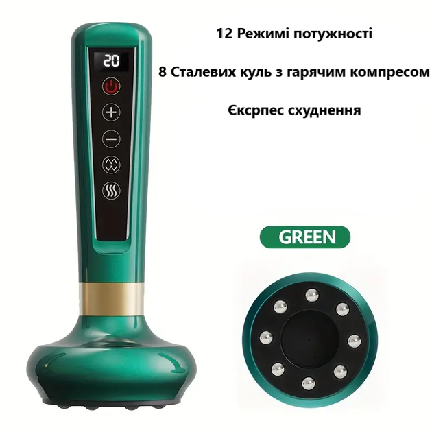 Вакуумний масажер для коригування фігури та антицелюлітного масажу з підігрівом Зелений