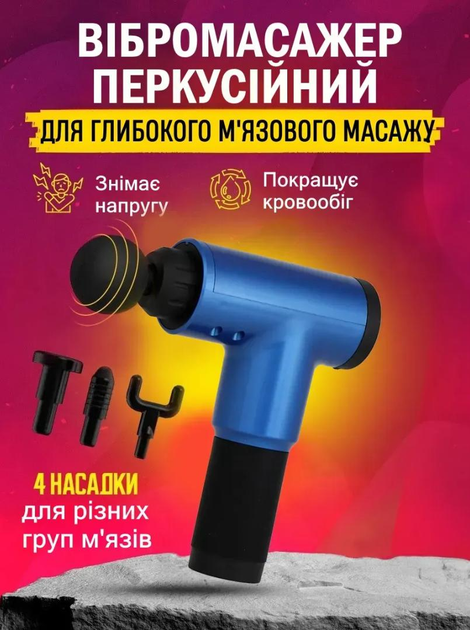 Масажер перкусійний ручний вібромасажер портативний для тіла з насадками BRS Blue