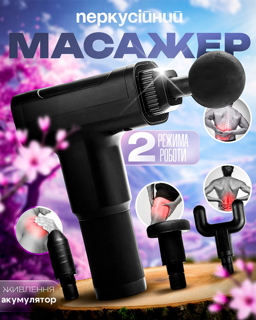 М'язовий масажер перкусійний ударний пістолет від акумулятора для тіла та м'язів вібромасажер BRS Black