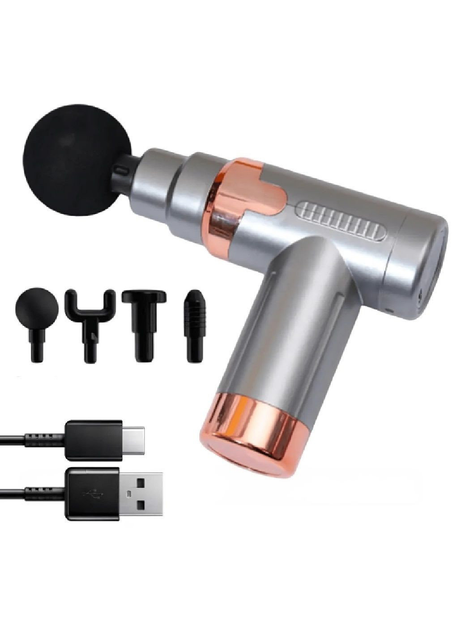 Перкусійний акумуляторний ручний масажер для тіла з насадками 5 штук 3300 об/хв 2000 мАг 26237 см (480664-Prob)