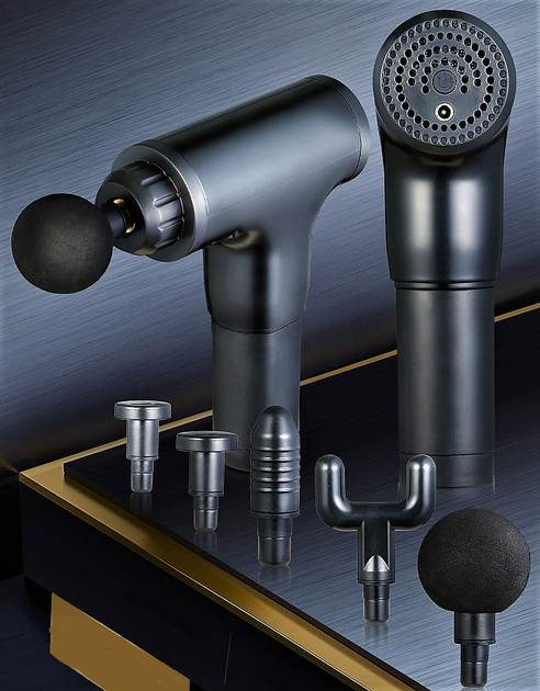 Набір акумуляторний ручний м'язовий вібромасажер пістолет з насадками масажним килимком для ніг (479685-Prob)