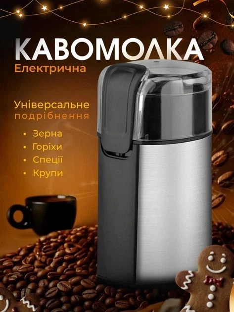 Електрична кавомолка DОМОТЕС МS-11О8 подрібнювач для кави та спецій з нержавіючої сталі, 250 Вт