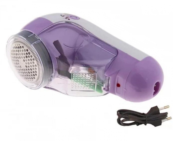 Машинка для стрижки катишків LR386 бездротова, знімний контейнер, 6 лез, 40 хвилин роботи Білий з фіолетовим